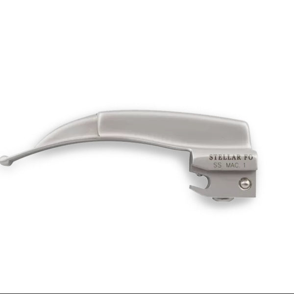 Description: Stellar Macintosh fibreoptic laryngoscope blades feature a low shoulder profile for better visualization and easier intubation of patients. The large 4.2mm integrated fibre-optic bundle maximizes light transmission while reducing crevices and hard-to-clean areas for better removal of bioburden. The matte finish reduces blade-glare and increases ease of use. The most used laryngoscope blade design, Macintosh blades are available in multiple sizes. The curved blades feature a matte finish for reduced glare and a 4.2mm fibreoptic bundle provides abundant light for improved visibility. Stellar Series Laryngoscope Blade benefits: