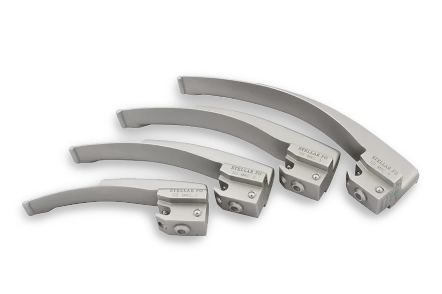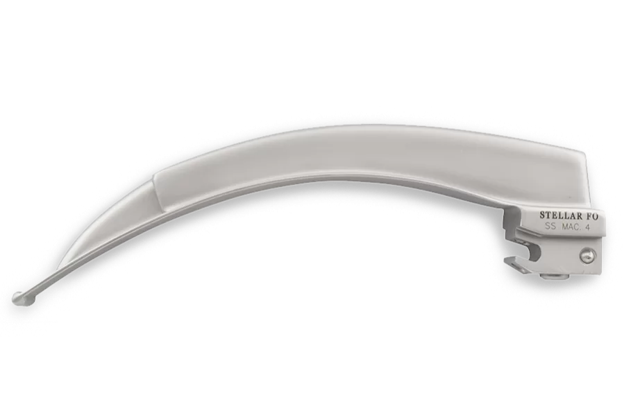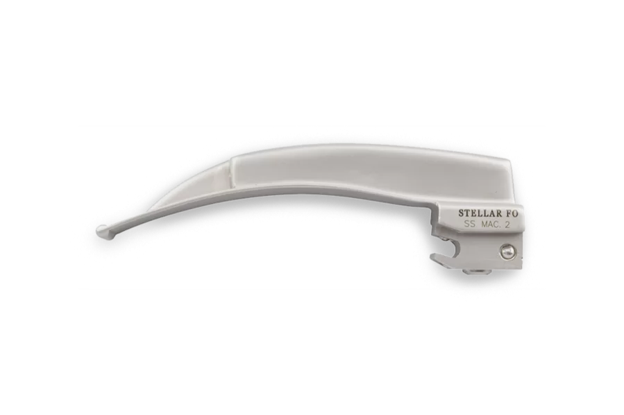 Stellar Macintosh fibreoptic laryngoscope blades feature a low shoulder profile for better visualization and easier intubation of patients. The large 4.2mm integrated fibre-optic bundle maximizes light transmission while reducing crevices and hard-to-clean areas for better removal of bioburden. The matte finish reduces blade-glare and increases ease of use.