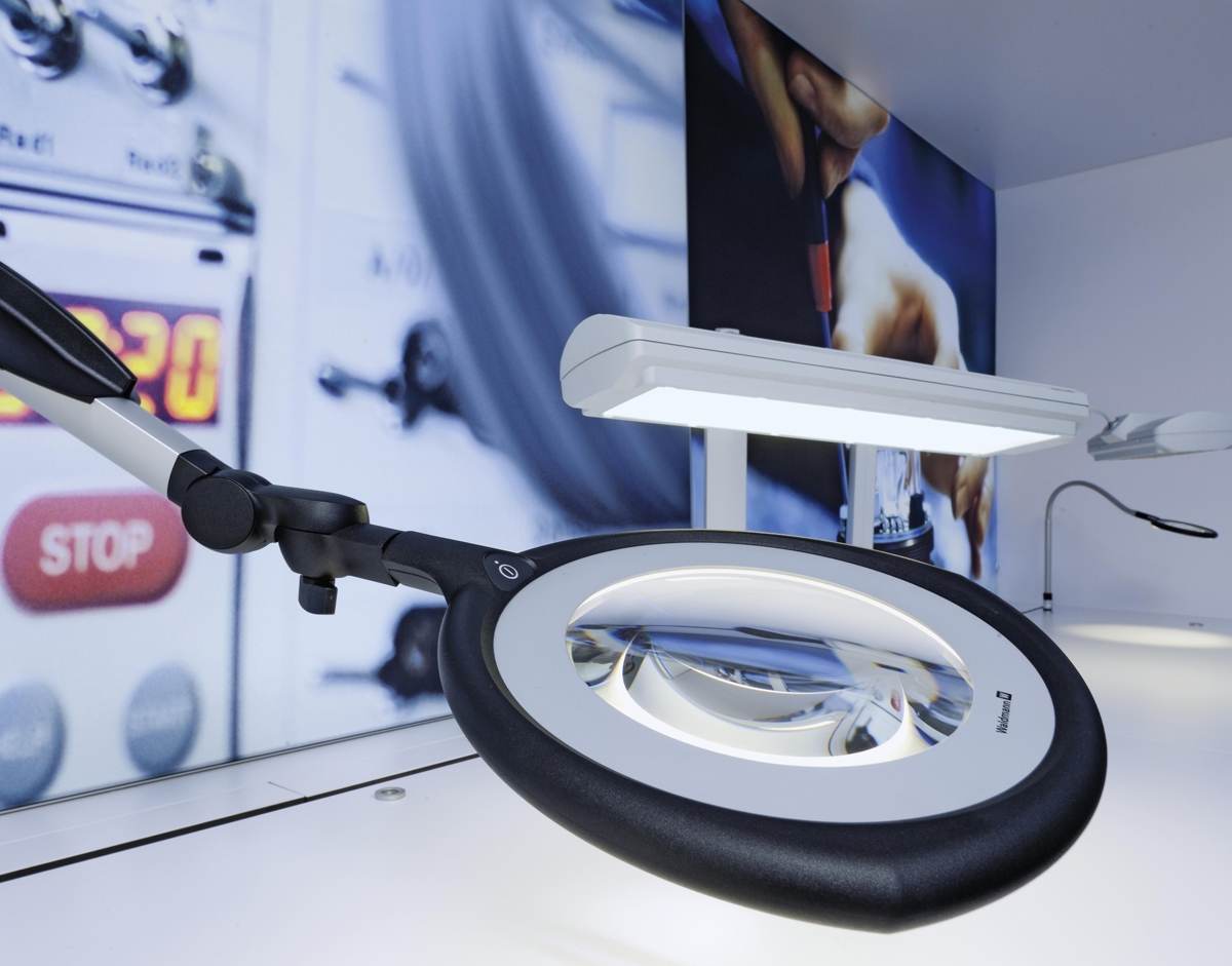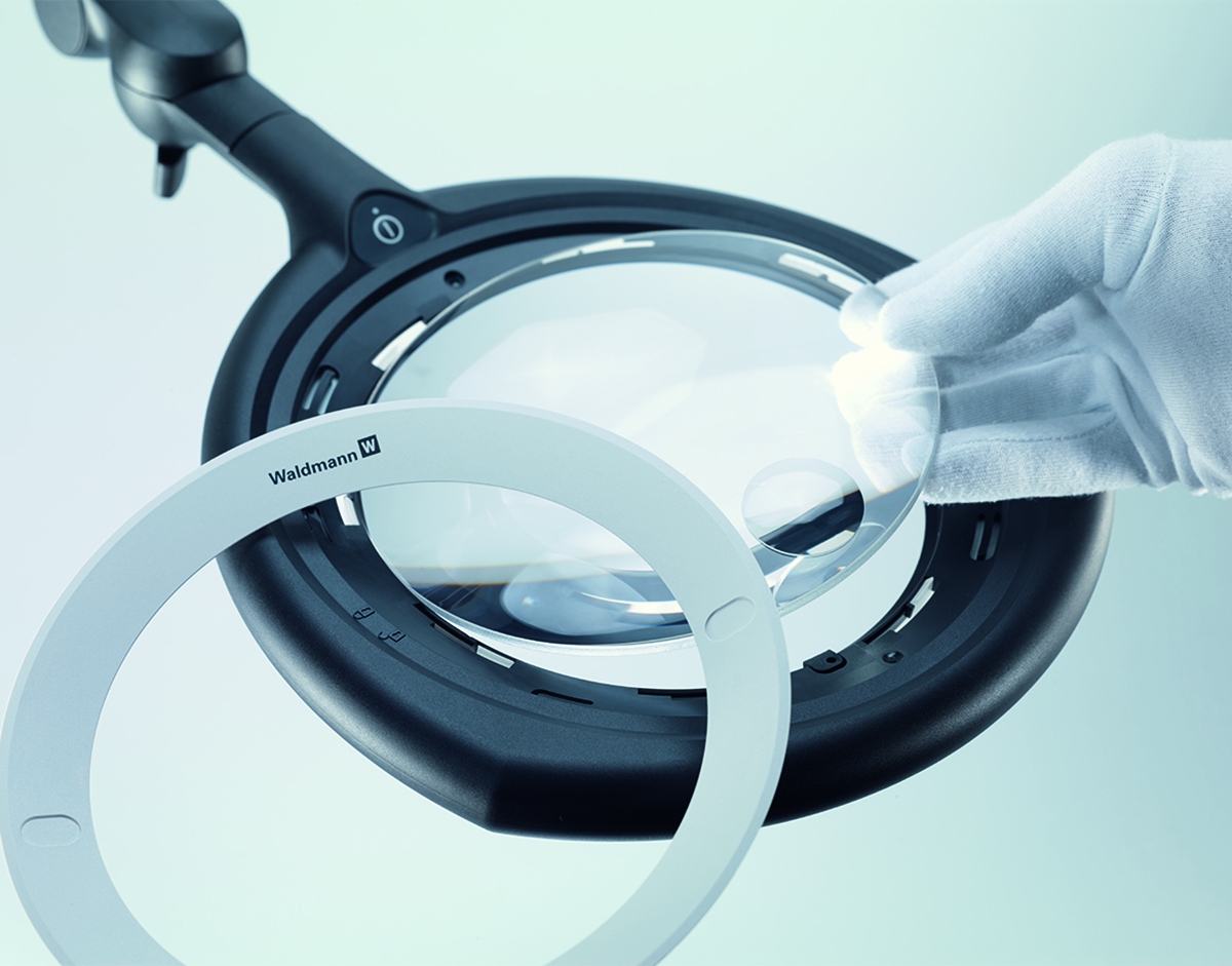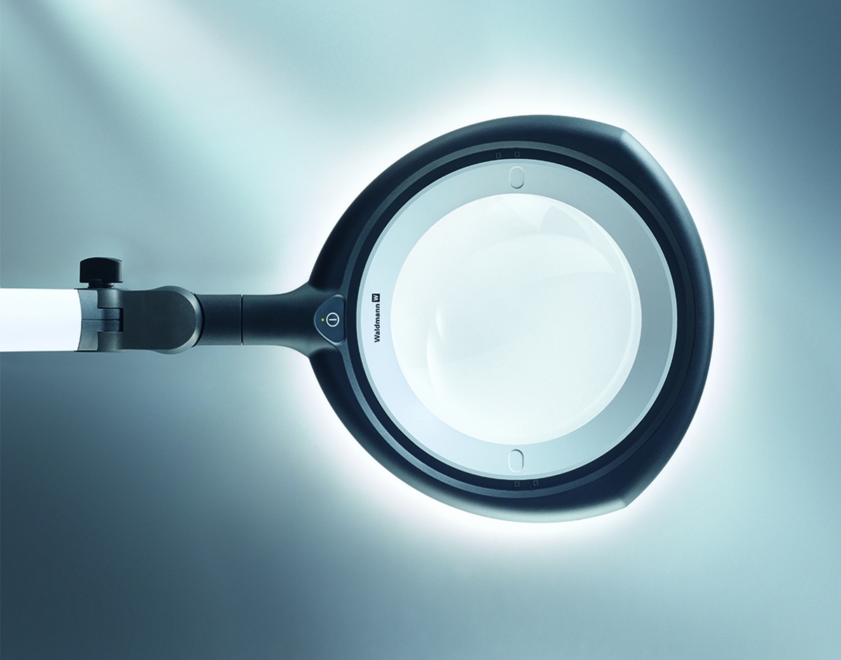 TEVISIO lives up to the high standards of the Waldmann product line. Premium LEDs illuminate a 6.3″ diameter, wide-angle, distortion-free lens. The touch-panel on the head enables customization of the light output, easily dimmable from 100% to 10%. The innovative balanced-arm technology and strong anodized aluminum construction allow for easy adjustment and dependable precise positioning while six independent swivel joints turn the head up to 90 degrees in every direction. A color rendering index (CRI) of 90 makes it possible to differentiate between subtle variances.. Energy-efficient LEDs provide 50,000 hours of LED life while using just 13 watts of power. Available with a 31” or 39” arm reach.
